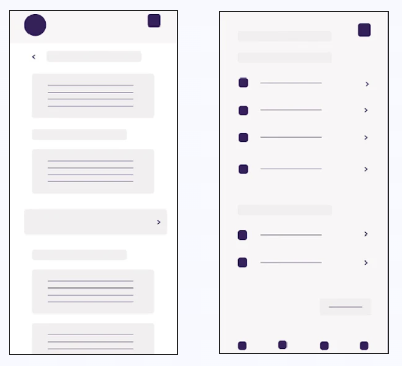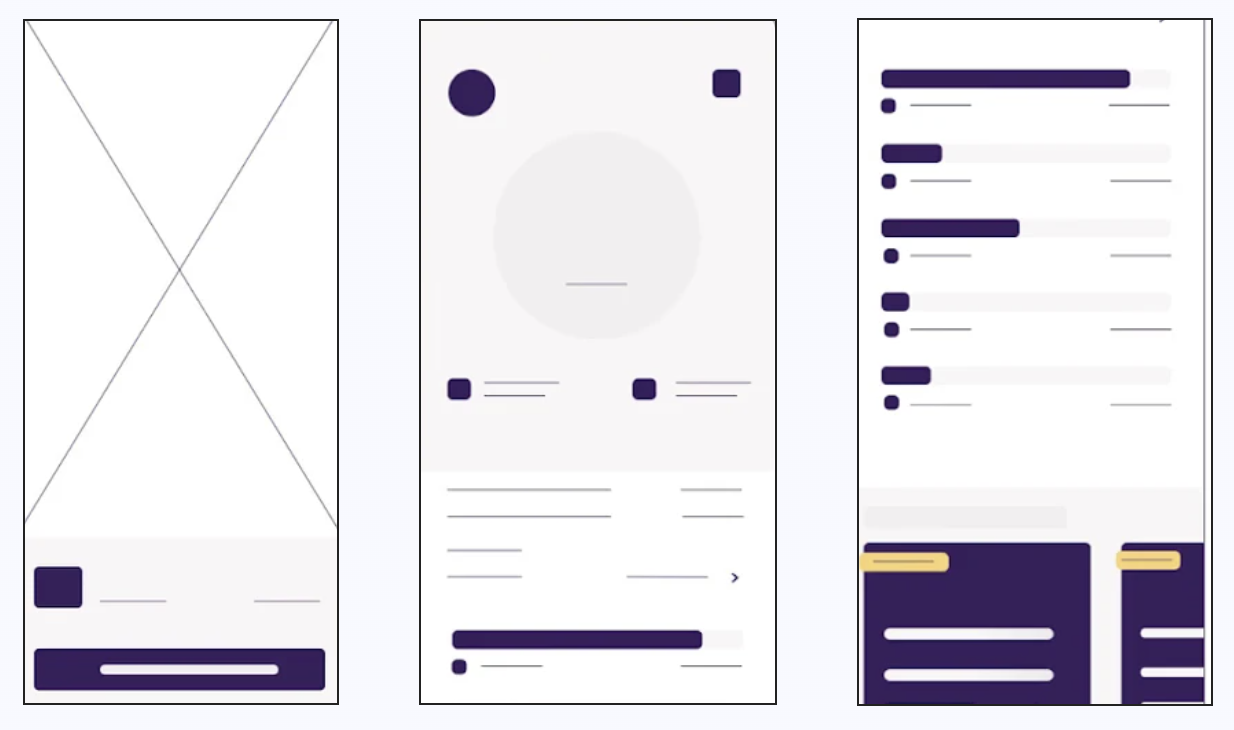 After the paper sketching was done, wireframes were created to visualize a potential final design.