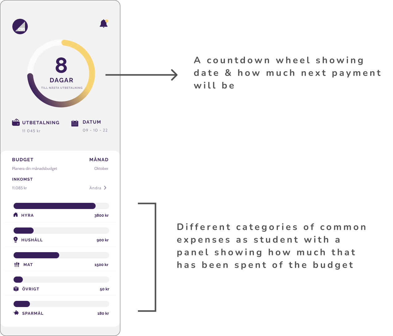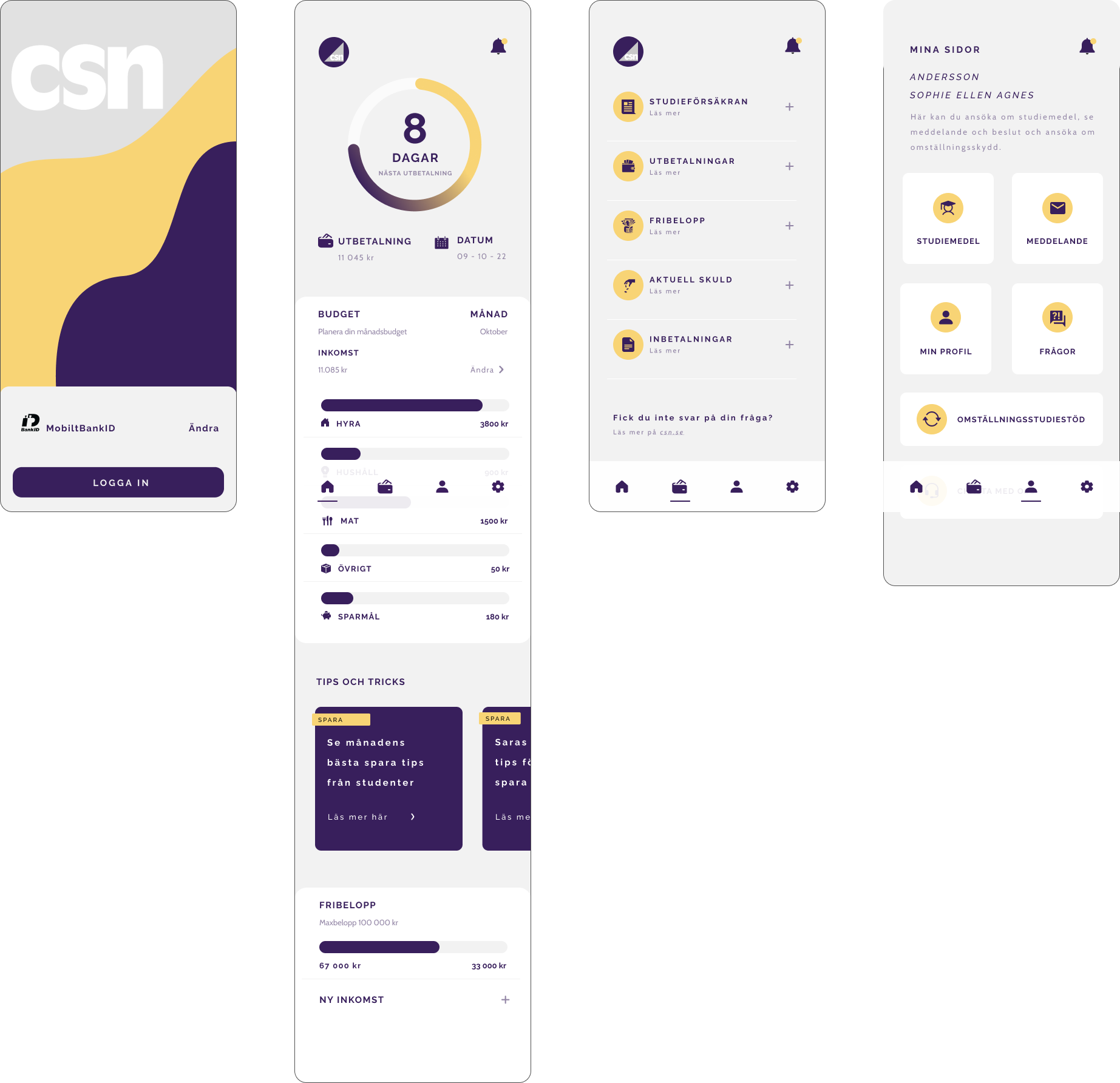 Created budgeting tools and a countdown to the next CSN payment to help users better manage their finances.